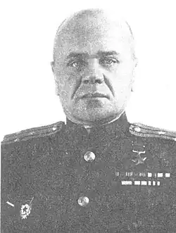 - ↑ Командование корпусного и дивизионного звена Советских Вооруженных Сил периода Великой Отечественной войны 1941-1945 гг. : Приложение к книге «Военные кадры Советского государства в Великой Отечественной войне 1941—1945 гг.» / Главное управление кадров МО СССР. — М.: Военная Академия им. М. В. Фрунзе, 1964. — 564 с. — С. 560.