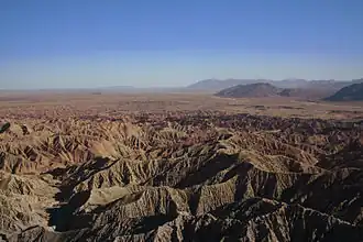Большая чаша окружающей пустыни окружена горами: на юге возвышаются горы Валлесито, а на севере — самые высокие горы Санта-Роза. Они находятся в дикой местности, без асфальтированных дорог и с всего с несколькими постоянными водотоками.