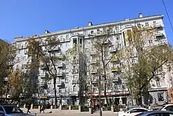 Фасад дома № 19 членён на плоскости трёхгранными эркерами, переходящими на уровне шестого-седьмого этажей в обрамлённые колоннами лоджии. Верхний этаж также выделен сплошным рядом балконов. Торцы обоих зданий акцентированы рядами Г-образных балконов, выполняющих роль раскреповки фасадных плоскостей[5]. |