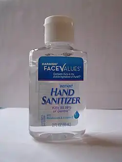 Антисептик для рук, кожный антисептик, или санитайзер[1], — тип дезинфицирующего средства, который используется в среде медицинского обслуживания для предотвращения передачи патогенных микроорганизмов, а также для соблюдения элементарных правил гигиены рук в местах, в которых умывальник и мыло недоступны. В зависимости от ситуации является дополнением или альтернативой мытью рук с мылом и водой. Доступен в различных формах: жидкий раствор, гель, пена. Активным ингредиентом в антисептике для рук может выступать изопропанол, этанол, н-пропанол, или повидон-йод. Вспомогательные вещества, как правило, включают загуститель, такой как полиакриловая кислота, увлажнители, такие как глицерин, а также пропиленгликоль, и эфирные масла растений. Спиртосодержащие антисептики считаются более эффективным средством для уничтожения микроорганизмов, чем мыло, и меньше сушат кожу рук. Антисептики для рук содержат в качестве действующего вещества либо спирт, либо третичные или четвертичные амины, малые концентрации азотистого катионного поверхностно-действующего агента хлорид бензалкония, триклозан хлорированных ароматических соединений или повидон-йод.