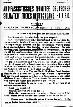 В свою очередь[22] командование «Группы дивизий Македонии» признало «Немецкий антифашистский комитет Македонии» под руководством «товарища майора» Dr Georg Eckert как подразделение Центрального немецкого антифашистского комитета Москвы «Свободная Германия».