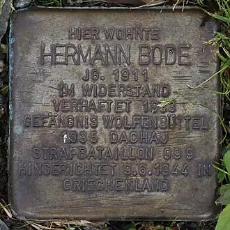 - -Герман Боде род. 01.02.1911 (коммунист, бывший муниципальный советник Брауншвейга)