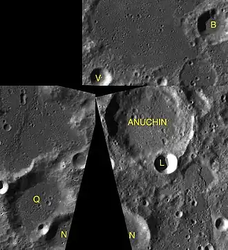 - ↑ Кратер Анучин на карте LAC-130. Дата обращения: 23 июня 2020. Архивировано 20 февраля 2013 года.