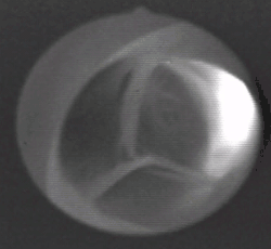 - пик открытия створок, приходится на первую фазу максимального изгнания крови: свободные края створок максимально изгибались в сторону синусов, форма открытия клапана приближается к кругу;