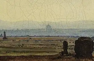 На картине изображён вид в сторону Рима вдоль Аппиевой дороги — одной из самых древних мощёных римских дорог, строительство которой началось в 312 году до н. э.[2][4] Дорога проходит между развалинами древних гробниц, а вдали видны силуэты римских зданий, среди которых выделяется купол собора Святого Петра. Замысел картины родился летом 1845 года, во время поездки Александра Иванова с художником Егором Солнцевым по окрестностям Рима. По словам Иванова, он ездил «отыскивать прекрасные места» и «сильно поражён был видом Рима на девятой версте — в Альбано»[5][6][7].