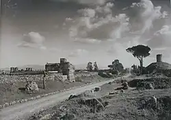 Аппиева дорога (Via Appia) — одна из самых древних мощёных римских дорог, строительство которой началось в 312 году до н. э. при цензоре Аппии Клавдии Цеке. Дорога, достигавшая 4—4,5 м в ширину, связывала Рим с южной частью Апеннинского полуострова: сначала был построен участок до Капуи, а затем (в 244 году до н. э.) — до портового города Брундизий (ныне Бриндизи). Вблизи самого старого участка Аппиевой дороги, прилегающего к Риму, находились виллы римских патрициев, а вдоль дороги были расположены гробницы и надгробные памятники знатных горожан. Согласно апокрифическим «Деяниям Петра», именно на Аппиевой дороге апостол Пётр встретил воскресшего Иисуса Христа, обратившись к нему с вопросом «Камо грядеши, Господи?»[4].