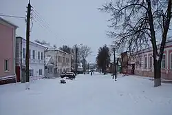 Тогда же был подготовлен регулярный план перестройки уездного города[34]. Однако город по-прежнему оставался почти сплошь деревянным, что способствовало сильным пожарам — 1826 года (после которого архитектором Прокофием Семёновичем Фомченковым был подготовлен новый регулярный план города) и особенно 1837 года, в котором сгорел почти весь город, за исключением семи каменных строений[35][36].
