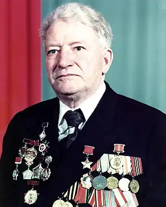 - Звание Герой Советского Союза (Указ Президиума Верховного Совета СССР от 24 марта 1945 года):