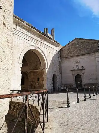 В 1463 году во время осады города с целью изгнания его сеньора Сигизмондо Пандольфо Малатесты артиллерия Федерико да Монтефельтро разрушила аттик арки. Фрагменты арки были повторно использованы при строительстве прилегающей церкви и лоджии Святого Михаила. Оригинальный облик ворот был при этом изображён на ренессансном барельефе, высеченном на фасаде церкви.