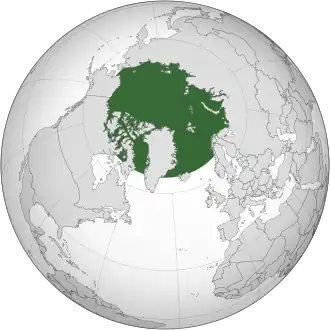 А́рктика (от греч. ἄρκτος — «медведица», ἀρκτικός — «находящийся под созвездием Большой Медведицы», «северный») — единый физико-географический район Земли, примыкающий к Северному полюсу и включающий окраины материков Евразии и Северной Америки, почти весь Северный Ледовитый океан с островами (кроме прибрежных островов Норвегии), а также прилегающие части Атлантического и Тихого океанов. Южная граница Арктики совпадает с южной границей зоны тундры[1]. Площадь — около 27 млн км²; иногда Арктику ограничивают с юга Северным полярным кругом (66° 33′ с. ш.), в этом случае её площадь составляет 21 млн км²[2].