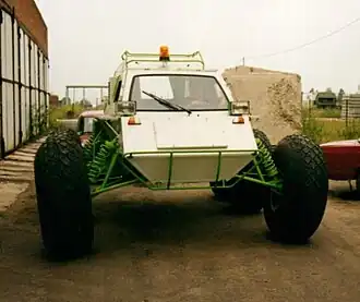 Для снижения массы вездехода были применены колёса необычной конструкции: вместо цельного обода — два кольца, соединённых между собой стальными трубками, вогнутыми внутрь колеса. Спицы сделаны из тех же стальных трубок. Вместо шин использовались обычные камеры от грузовиков, раздутые до 125 сантиметров в диаметре или от шасси вертолётов (диаметр — 130 см.). Это позволило снизить вес колеса в сборе всего до 18,5 кг[2].