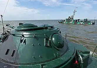- VB 76 class small river patrol monitors (малые речные патрульные мониторы типа ВБ 76) — румынские речные патрульные малые мониторы типа «VB 76» («vedeta blindante mici»), построенные в количестве 18 единиц на верфи в г. Тулча в период с 1974 по 1977 годы[34]. Представляют значительно переработанный проект советских бронекатеров проекта 1125, внешне эти спроектированные в начале 70х гг XX века корабли напоминают советские бронекатера пр 191М и 192, поставленных в Румынию в 1952 году. Они имеют низкий надводный борт и характерный «горб» в средней части. 76-мм пушка в башне специальной конструкции, на ходовой рубке вторая пулемётная установка и антенна радиолокационной станции. Данные о системе бронирования и толщине брони отсутствуют[1]. Поступали в состав Дунайской флотилии ВМС Румынии[35].