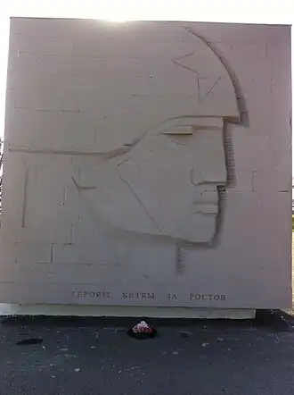 Бои за Ростов осенью 1941 года были историческими: здесь наша Красная Армия перешла от обороны в наступление. Воздвигнутый вами памятник будет напоминать новым поколениям советских людей о беззаветном героизме их отцов и дедов, посланцев всех братских народов нашей страны, по призыву партии Ленина грудью вставших на защиту нашей Родины от врага. Никогда не сотрется в памяти народной их подвиг, значение которого было громадным для нашей страны и всего человечества.