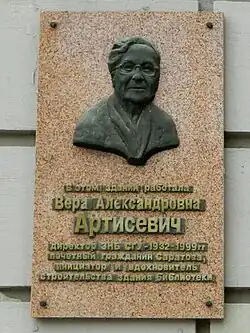 - ↑ А. В. Зюзин. Вера Александровна Артисевич (1907-1999). library.sgu.ru. Дата обращения: 18 сентября 2022. Архивировано 11 февраля 2012 года.