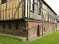 В конце XII в. возник как тип английский усадебный дом — деревянный или фахверковый, c амбарами на первом этаже, жильём на втором; лестница на второй этаж ведёт от холла. Как и в большинстве домов данного периода, лестница, вёдшая на второй этаж с отапливаемой камином главной комнатой, была наружной[7] (в Шотландии такие лестницы сохранялись до XVIII в.[9][7]). Планировка такого рода была привнесена на Альбион норманнами. До наших дней дошло лишь несколько каменных домов XII в.[7]