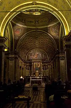 В 1512 году были открыты для обозрения фрески в Сикстинской капелле, которые считаются вершиной творчества гениального Микеланджело. (1475—1564). Микеланджело был автором неосуществленного проекта надгробия Юлия II в главном нефе собора Сан-Пьетро. Ныне условный макет гробницы с частью подлинных скульптур экспонируется в церкви Сан-Пьетро-ин-Винколи. Микеланджело спроектировал оформление площади Капитолия (1536) — один из самых выдающихся ансамблей эпохи Возрождения. Микеланджело руководил работами по строительству собора Св. Петра. Он значительно изменил план, расширив подкупольное пространство за счет усиления пилонов средокрестия и выстроил новую апсиду, сложно профилированные карнизы и наличники окон также предвещают экспрессию барокко. По проекту Микеланджело после его смерти Джакомо делла Порта возвел купол над собором, придав ему вместо изначально запланированной полусферической формы новую, параболическую, чем усилил общую экспрессию силуэта.