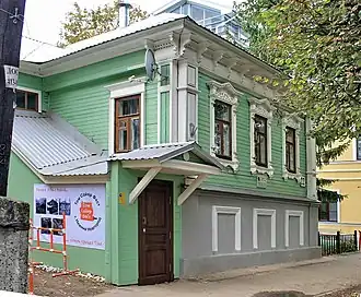 Русское деревянное зодчество в Нижнем Новгороде за века своего существования прошло те же стадии эволюции, что и архитектура всей России. Каждый этап был подвержен влиянию господствовавшего в ту пору стиля[34]. До градостроительных преобразований 80-х годов XVIII века в Нижнем Новгороде преобладала деревянная застройка, следовавшая как древним прообразам (ставились трёхчастные избы с самцовыми бревенными под конёк торцами, украшенными прилечинами и резными охлупеневыми брёвнами), так и новым веяниям: возводились новые типы домов — деревянные на каменных фундаментах (или полуэтажах) с колонными портиками (или пилястрами) на главных фасадах и высокими (колпаком) шатровыми четырёхскатными кровлями, в которых по традиции располагались светлицы женской половины семьи (как пример, дома по ул. Ульянова, 8 и Б. Покровской, 21)[35].