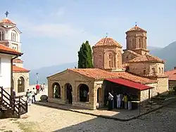 Время от времени с 893 г. н. э. по 13 век, часть или вся сегодняшняя Северная Македония находилась под контролем Первого Болгарского царства и Второго Болгарского царства. Это привело к появлению зданий, сосредоточенных, в частности, в Охриде, который был столицей Первого Болгарского царства с 968/972 по 1018 год нашей эры[2]. Сюда входят исторические церкви и монастыри, такие как Собор Святой Софии, монастырь Святого Наума и Пантелеимонов монастырь.