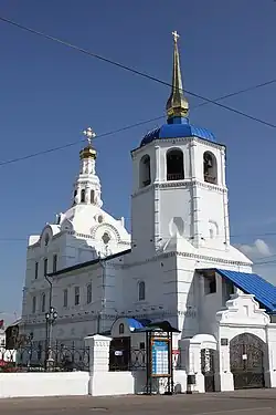 Строительство деревянной кладбищенской Троицкой церкви началось в 1770 году[1]. В 1786 году немного севернее ветхого здания деревянной Спасской церкви началось строительство каменного храма, завершившееся в 1800 году. Церковь находилась на углу улиц Калинина (бывшая Спасская) и Соборной[2]. У церквей образуются свободные пространства, которые играли роль архитектурно-композиционных узлов. В начале XVIII века деревянные церкви строились в стиле шатровых, кубоватых церквей Русского Севера. Во второй половине XVIII века формируется стиль сибирского барокко.
