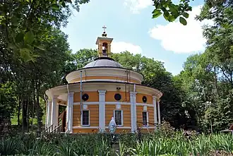 С XV века на месте Аскольдовой могилы существовал Пустынно-Николаевский монастырь, переведённый Мазепой на место Николаевского военного собора. В 1809—1810 годах по проекту архитектора А. И. Меленского на этом месте возведена каменная церковь-ротонда. В 1936 году церковь была превращена в парковый павильон, над которым по проекту архитектора П. Г. Юрченко в 1938 году была надстроена колоннада. С 1990-х годов — действующий храм (УГКЦ), в 1998 году восстановленный в первоначальном виде.