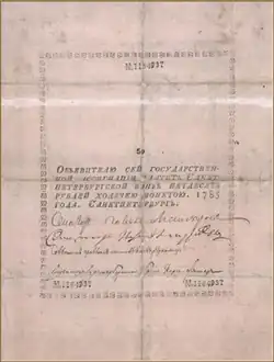 - ↑ Государственные ассигнации 1818 - 1843 гг. moneta-russia.ru. Дата обращения: 6 февраля 2019. Архивировано 9 февраля 2019 года.