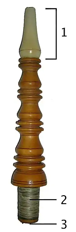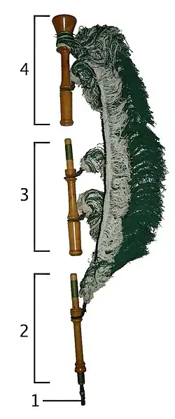 ![]() Схема строения астурийской гайты: 1. Соплете 2. Пунтеру 3. Ронкон 4. Фуэлье | |