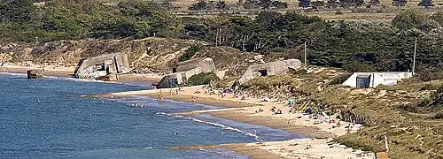 Для защиты от боевых кораблей на побережье были выстроены береговые батареи, на вооружении которых состояло 28 различных артиллерийских систем, многие из которых были трофейными. К лету 1944 года часть батарей ещё не была укреплена, и по приказу Роммеля она была отведена вглубь берега.