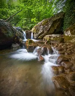 Река принимает воды многочисленных источников, среди которых можно выделить источники Пания (один из крупнейших карстовых источников Крыма со средним многолетним расходом — 370 л/с[3]), Джевизлык и Баш-Дере. На реке встречаются небольшие водопады (Инь-Янь, Тисовый).