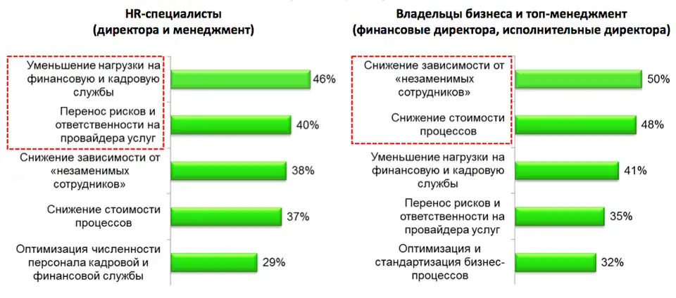 Основные выгоды от аутсорсинга расчёта зарплаты[10][11][12][13][14][15]: