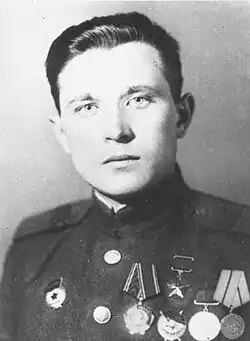 - ↑ Собрание музея: Портрет Героя Советского Союза Ф. П. Ахаева. 1943 г. // Чувашский государственный художественный музей.