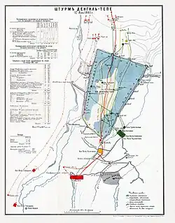 ![]() Каразин Н. Н. «Текинская экспедиция 1881 года. Штурм Геок-Тепе». Государственный Русский музей, 1889 | |||
