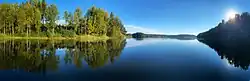 ![]() Вид на озеро Ахвенъярви со стороны посёлка Реускула | |