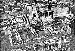Афины впервые пали в сентябре 480 г. до н. э.[3] Небольшое количество афинян, забаррикадировавшихся на Акрополе, в конце концов потерпело поражение, и Ксеркс приказал сжечь Афины.[4] Акрополь был разрушен, а Старый Храм Афины и Старый Парфенон разрушены:[5]