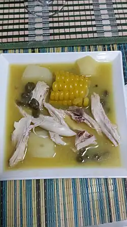 Обычно этот суп содержит кусочки курятины на кости, большие куски кукурузы на вилке, два-три типа картофеля («креольский картофель» с маленькими картофелинами, которые развариваются и делают суп гуще, масличные картофелины сорта «сабанера» и мягкие картофелины сорта «пастуса») и «гуаско» (guasca, галинсога мелкоцветковая), ароматное травянистое растение, распространённое по всей Америке, которое придаёт блюду характерный вкус. При приготовлении блюда в других странах часто вместо гуаско добавляется орегано.[4]