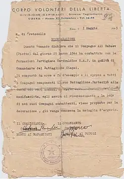 | Сражения/войны | Вторая мировая война (Движение Сопротивления в Италии) |