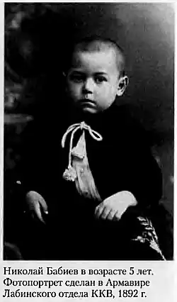 - 1892-м Бабиев командируется в Петербург в Офицерскую кавалерийскую школу и назначается в переменный состав казачьего отдела.