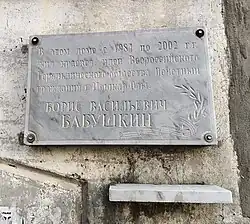 Мемориальная доска краеведу, Почётному гражданину г. Йошкар-Олы Борису Васильевичу Бабушкину на улице Петрова, д. 8 в г. Йошкар-ОлеВ Йошкар-Оле на доме, где он жил последние годы (ул. Петрова, 8), установлена мемориальная доска. Надпись на ней гласит: «В этом доме с 1984 по 2002 гг. жил краевед, член Всероссийского Геральдического общества, Почётный гражданин г. Йошкар-Олы Борис Васильевич Бабушкин»[4].