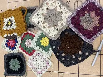 Бабушкин квадрат также очень часто вяжут в рамках акции Всемирного дня вязания в общественных местах[28].