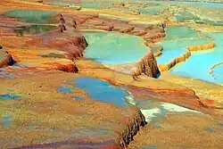 Источники Бадаб-е-Сурт расположены на высоте 1840 метров над уровнем моря. Разноцветные (оранжевые, жёлтые и красные) и разных размеров террасы данного объекта образовывались на протяжении многих лет, вследствие стекавших по горам термальных источников. Два источника имеют различный состав, поэтому они различаются по цвету, запаху, вкусу и объёму воды. Первый источник содержит очень солёную воду и накапливает бассейны, глубиной около 15 метров. Второй источник содержит воду, имеющей кислый вкус, оранжевого или красного цвета, поскольку в ней содержится много оксида железа. По сторонам Бадаб-е-Сурт произрастают деревья барбариса, а на возвышенности — хвойные леса[3]. Вся красота этого пейзажа в окружении гор и ландшафтов особенно впечатляет на закате солнца.