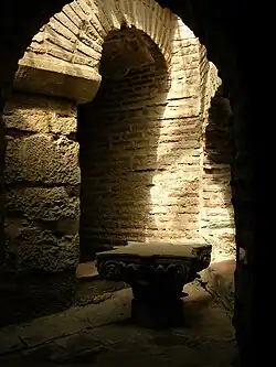В крипте с раннехристианских времен существовал источник воды (происходил из римских терм[13]), которая текла по устроенному в X веке водопроводу. Колодец с источником воды существует в настоящее время[35].