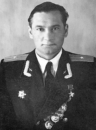 - ↑ Должность и воинское звание на дату представления к присвоению звания Героя Советского союза.