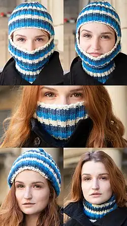 Фактически соединяет в себе шапку и маску-шарф. Традиционно изготавливалась из шерсти, в настоящее время[когда?] — также из различных видов синтетического трикотажа.