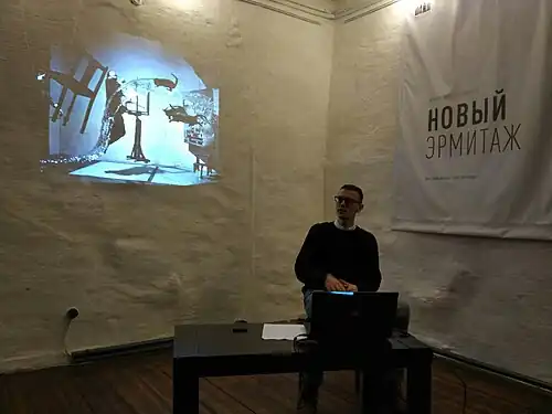 Куратор[13]. Эксперт по современному искусству. Организовывал лектории о современной поэзии, вечера концептуальной поэзии[14], панельные дискуссии на художественных выставках.