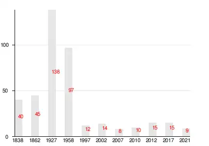 | 1838 | 1862[21] | 1997 | 2002[22] | 2007[23] | 2010[24] | 2012[25] |