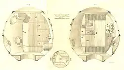 В интерьере не должно быть острых углов, о которые в условиях невесомости могут удариться космонавты. Цвета жилого отсека должны помогать при ориентировании и показывать, где верх (он выполнен в желтом или белом цвете), а где низ (зеленый цвет). Мы с материаловедами нашли очень хороший отделочный материал, так называемую ворсовую молнию. Это негорючий и нетоксичный материал предохранял от ушибов[4]