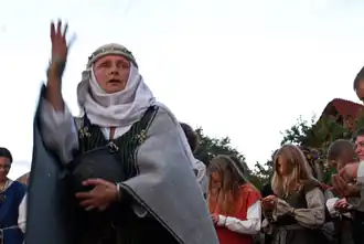 | На снимке жрица литовской «Ромувы» во время обряда | |
