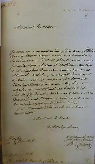 1 сентября того же года, по заключении Наполеона на острове св. Елены, граф де Бальмен был приставлен к нему, по личному назначению Государя, комиссаром от русского правительства. С редким тактом держал он себя в этой трудной обязанности; приходя в постоянные столкновения с губернатором острова, сэром Хадсон-Лоу и с комиссарами других держав, он тем не менее успел заслужить общее расположение и даже вызвать доверие самого Наполеона. Однако расстроенное непривычным климатом здоровье заставило графа де Бальмена покинуть остров.