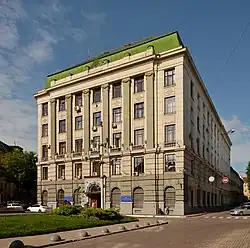 В 1912 году Торгово-промышленная палата и Львовская биржа переехали в специально построенное для них здание по улице Академической, 17 (нынешний проспект Шевченко). Монументальное неоклассическое здание было создано по проекту архитекторов Юзефа Сосновского и Альфреда Захаревича, в советский период в нём располагался горком Компартии, а в украинский период — Львовская областная прокуратура[83]. Что касается «чёрной биржи», которая специализировалась на спекуляциях с ценными бумагами, кредитах под грабительские проценты и валютных операциях, то пик её активности пришёлся на период перед Первой мировой войной. Нередко дельцы «чёрной биржи», работавшие вокруг памятника архангелу Михаилу и в окрестных кофейнях («Империал», «Карлтон», «Гранд», «Венское кафе»), узнавали новости раньше, чем эта информация попадала к властям или руководителям банков[84].