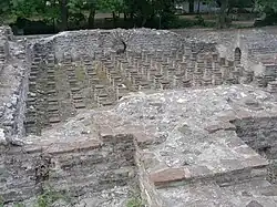 В крупных общественных банях действовала система центрального отопления с подогревом пола и стен — гипокауст (hypocaustum). Бани содержали не только массажные кабинеты и общие бассейны. В крупных банях находились также библиотеки и гимнастические залы, поскольку они считались своеобразными центрами общественной жизни.