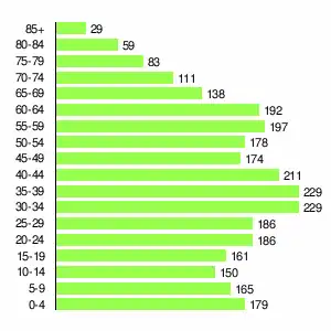 | Жителей | 1580 | 1805 | 1869 | 2150 | 2517 | 2782 | 2829 | 2818 | 2857 |